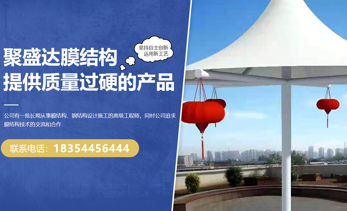 山東聚盛達膜結構工程有限公司憑借雄厚的實力,從方案設計、結構設計、靜動力分析、找形裁減設計、加工制作、整體安裝、使用維護與咨詢的完善服務,公司有著一批德才兼備,能打勝仗的高素質專業化膜結構施工隊伍,工作經驗都在十年之久。公司本著“以誠為本、以質取勝、實現雙贏”的經營理念,建立完善質量監控體系,嚴格按國家標準和技術規范組織設計、制作、安裝。公司以嚴謹的施工組織,先進的制作安裝工藝,過硬的施工隊伍,可靠的信譽保障,在質量、價格、服務上占有相對的競爭優勢。